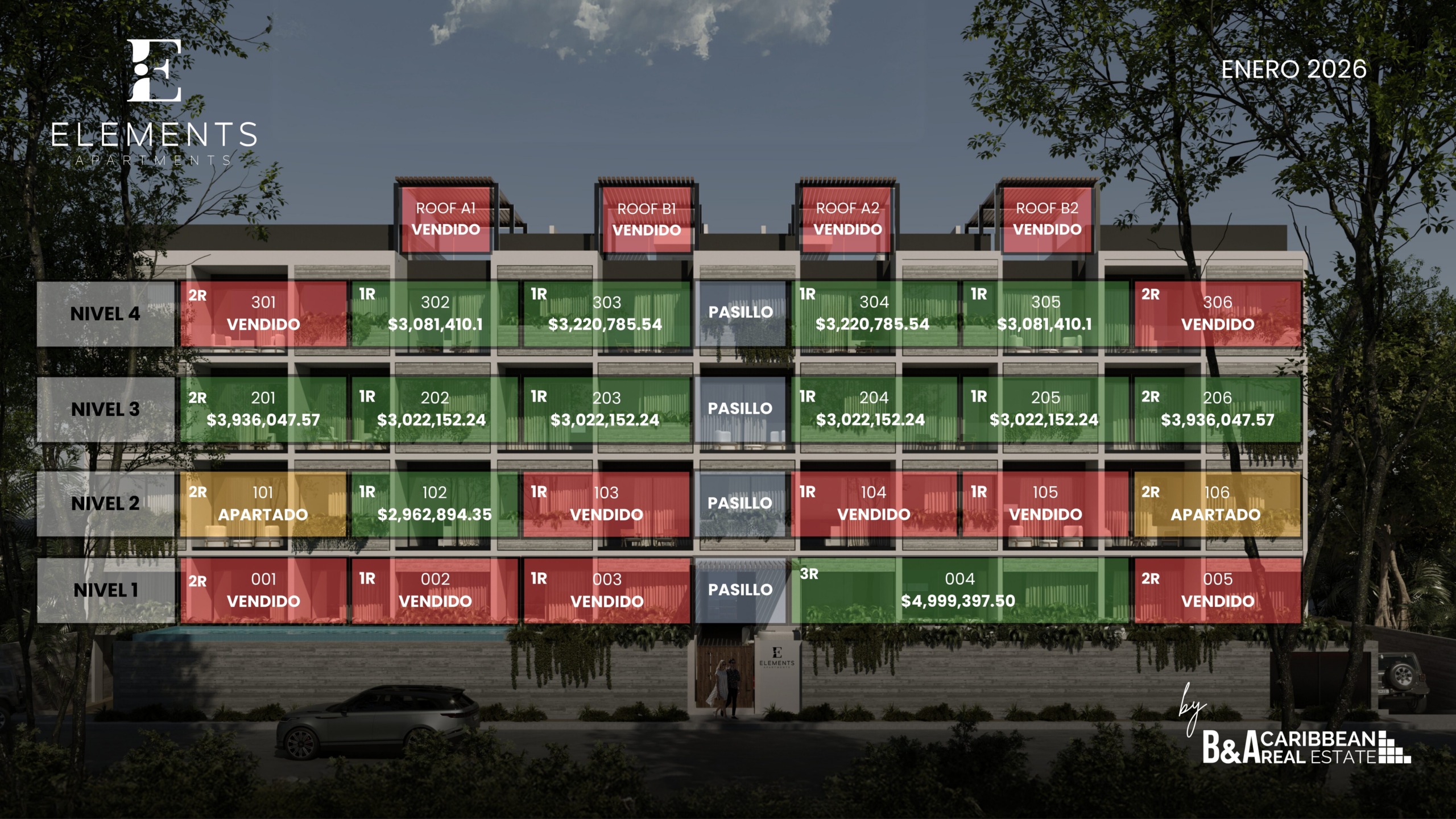 Elements Apartments es un desarrollo exclusivo ubicado dentro de Residencial Arbolada, un entorno seguro y moderno diseñado por Grupo Cumbres. Inspirado en los cuatro elementos —tierra, agua, aire y fuego—, Elements ofrece un estilo de vida que combina naturaleza, modernidad y elegancia.